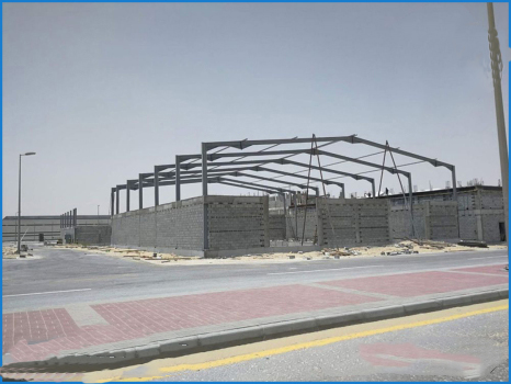 وكذا تجهيز مخازن عالية الجودة وحظائر هيكلية فولاذية وبنايات من الحديد تكفي لإقامة ورش عمل كبيرة.